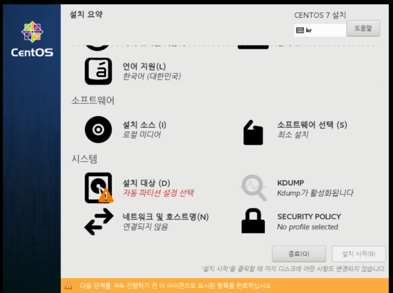 이로써 이러한 화면이 나온다면 가상머신에 리눅스 centos 7를 설치를 완벽히 한것이다.