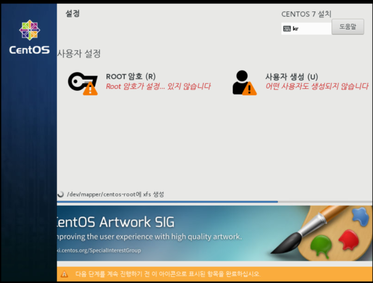 설정이 다된 상태이다. 설치가 완료될때까지 기다리면된다.