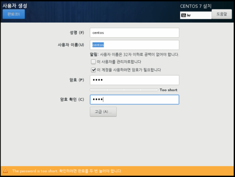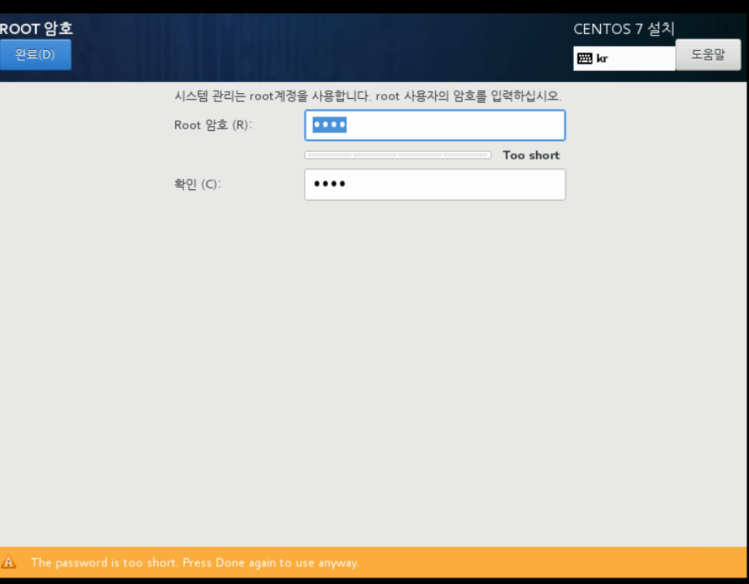 실무에서는 관리자 암호를 복잡하게 설정해야하지만 공부용이라 전 4자리만 했습니다.