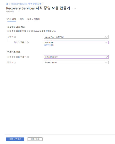 Recovery Services 자격 증명 모음은 복구 지점을 저장하고 백업 관련 작업을 수행하기 위한 공간입니다.
