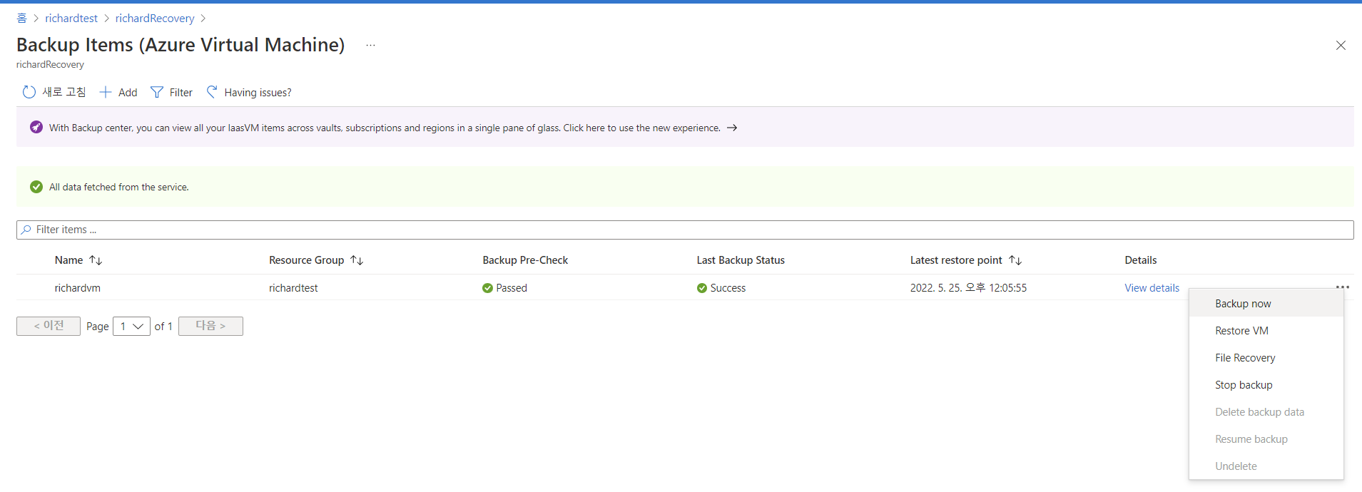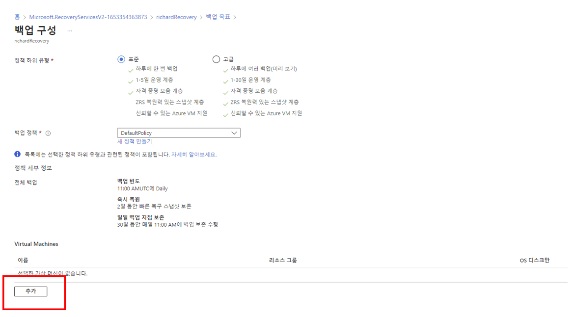 Azure 백업 서비스 구축