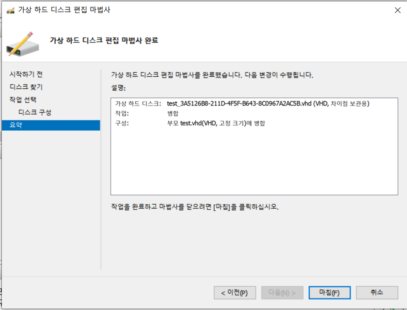 convert-vhd -path: [변환 할 디스크가 있는 실제 경로] -destinationpath [변환되는 디스크를 만들 경로] -VHDType Fixed
