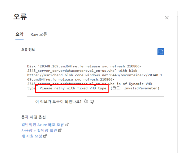 그대로 올리면 Azure에서 고정된 vhd 이 아니라 이미지 만드는 과정에서 오류가 난다.