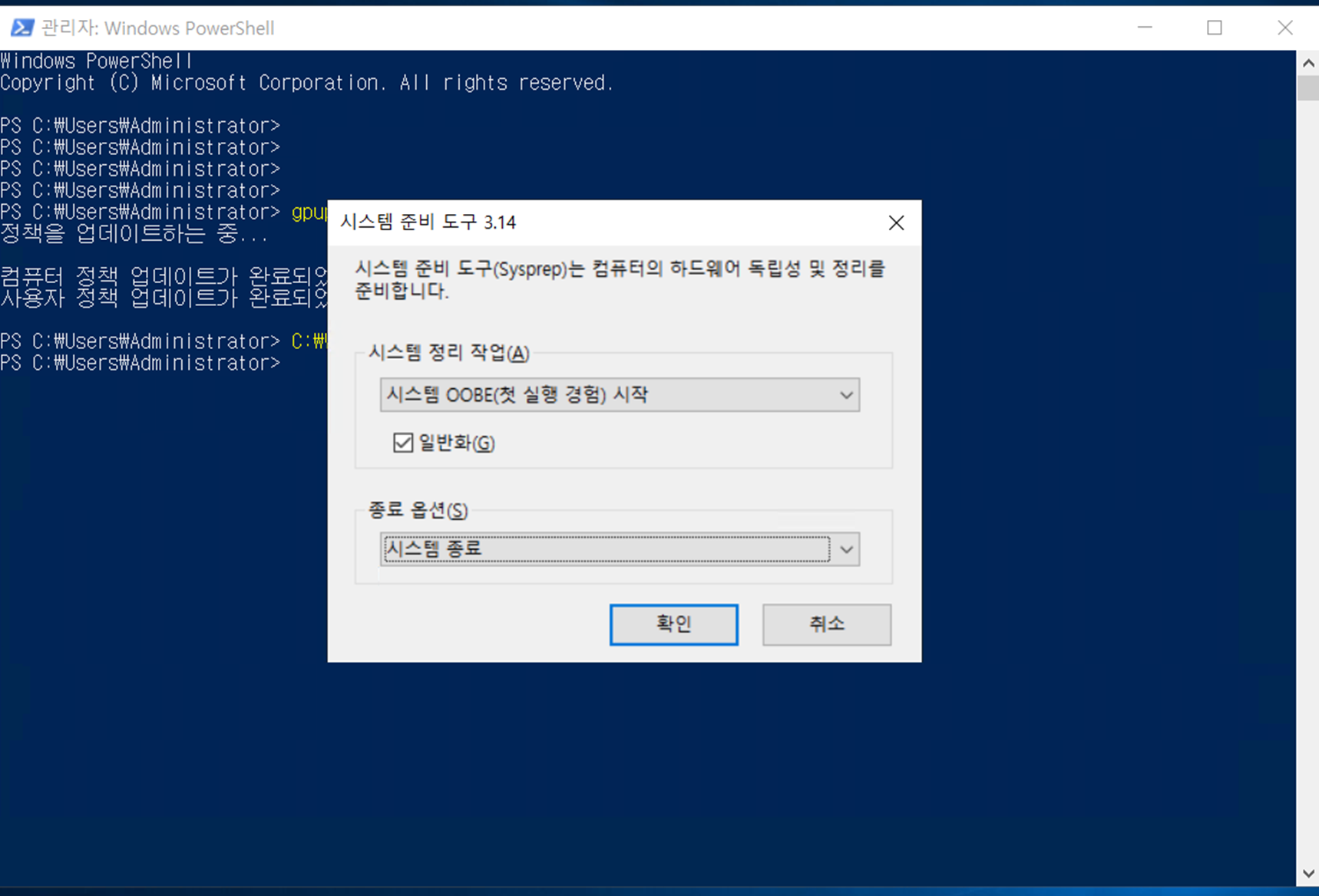이후 로컬 파워셸(관리자권한) 을 켜서