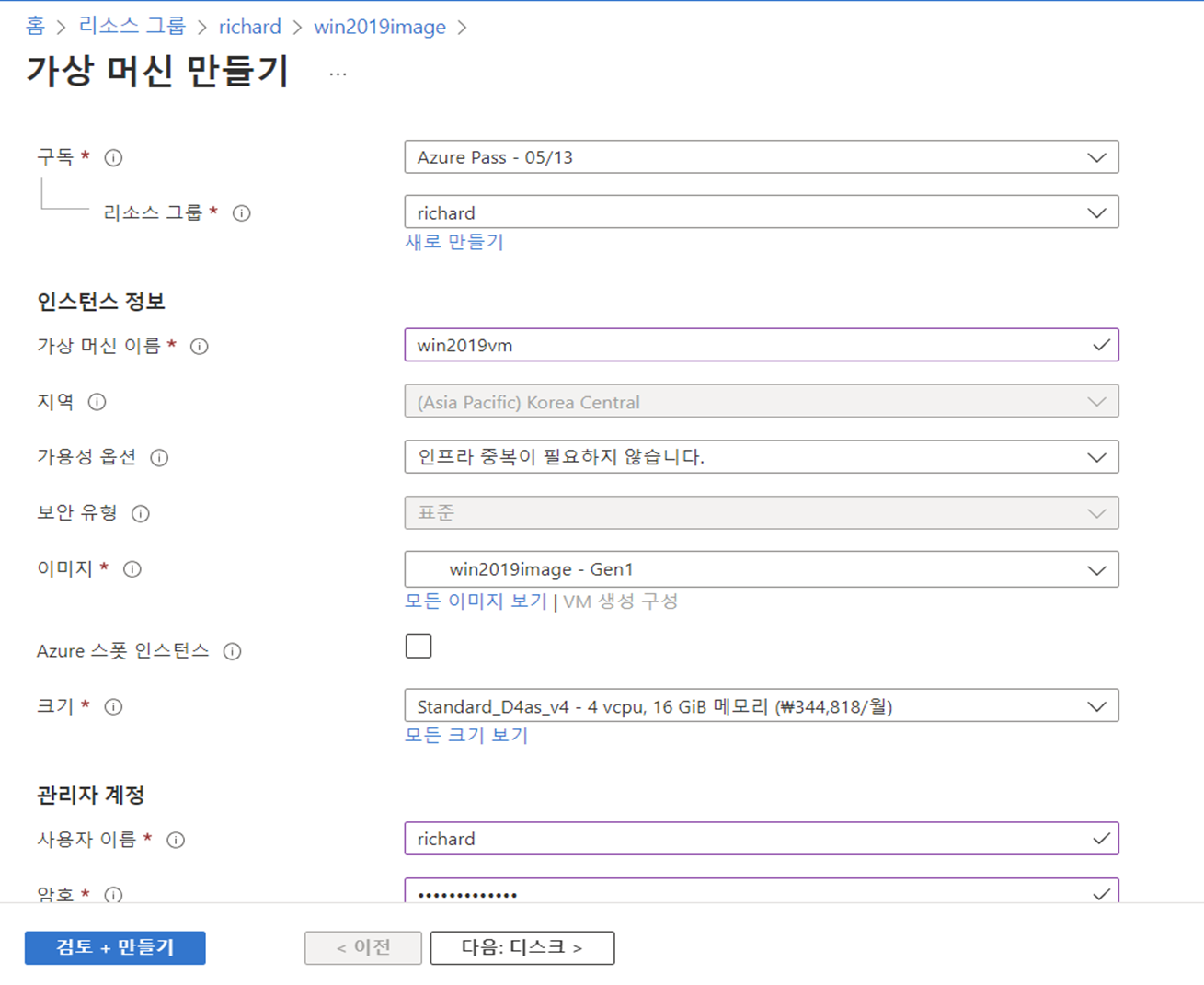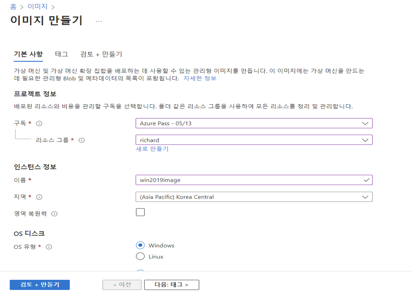 이미지 생성 후 vm을 만든다.