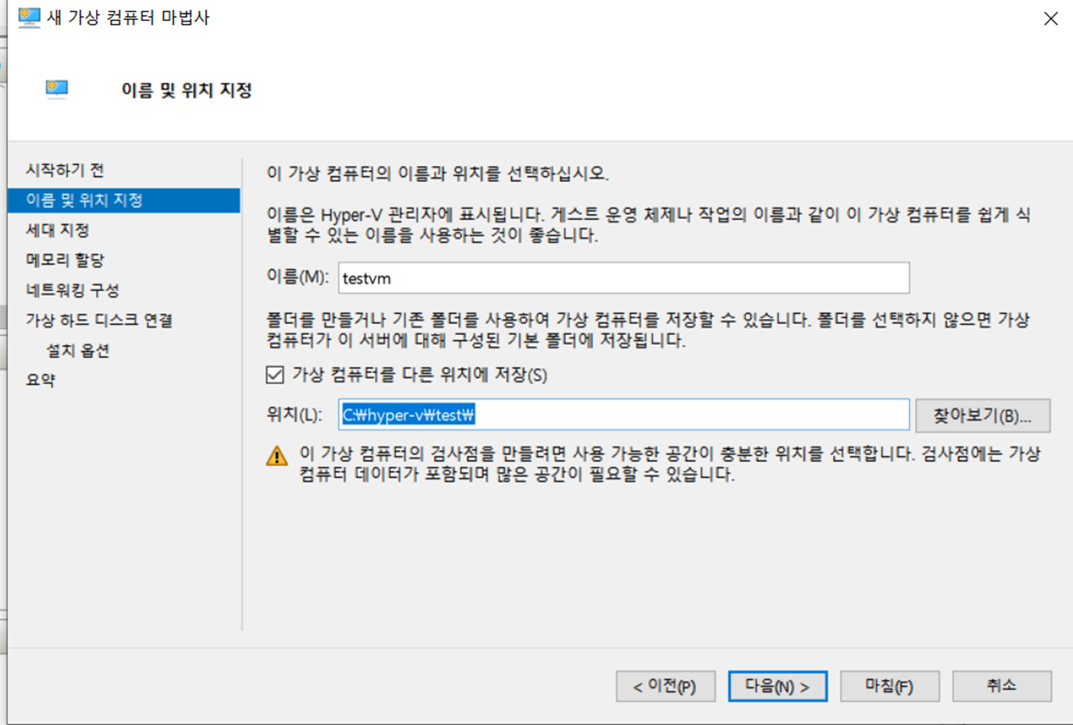 VM이 만들어질 경로 지정