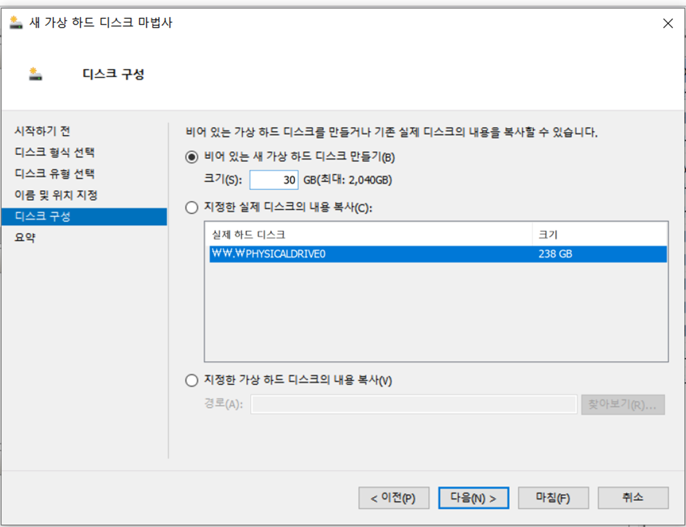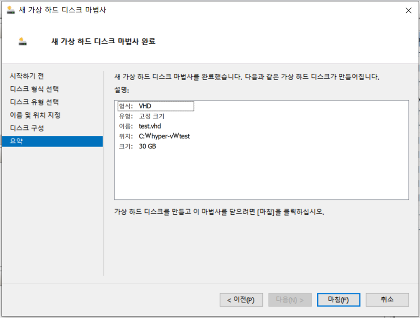 여기까지 VHD 디스크 생성
