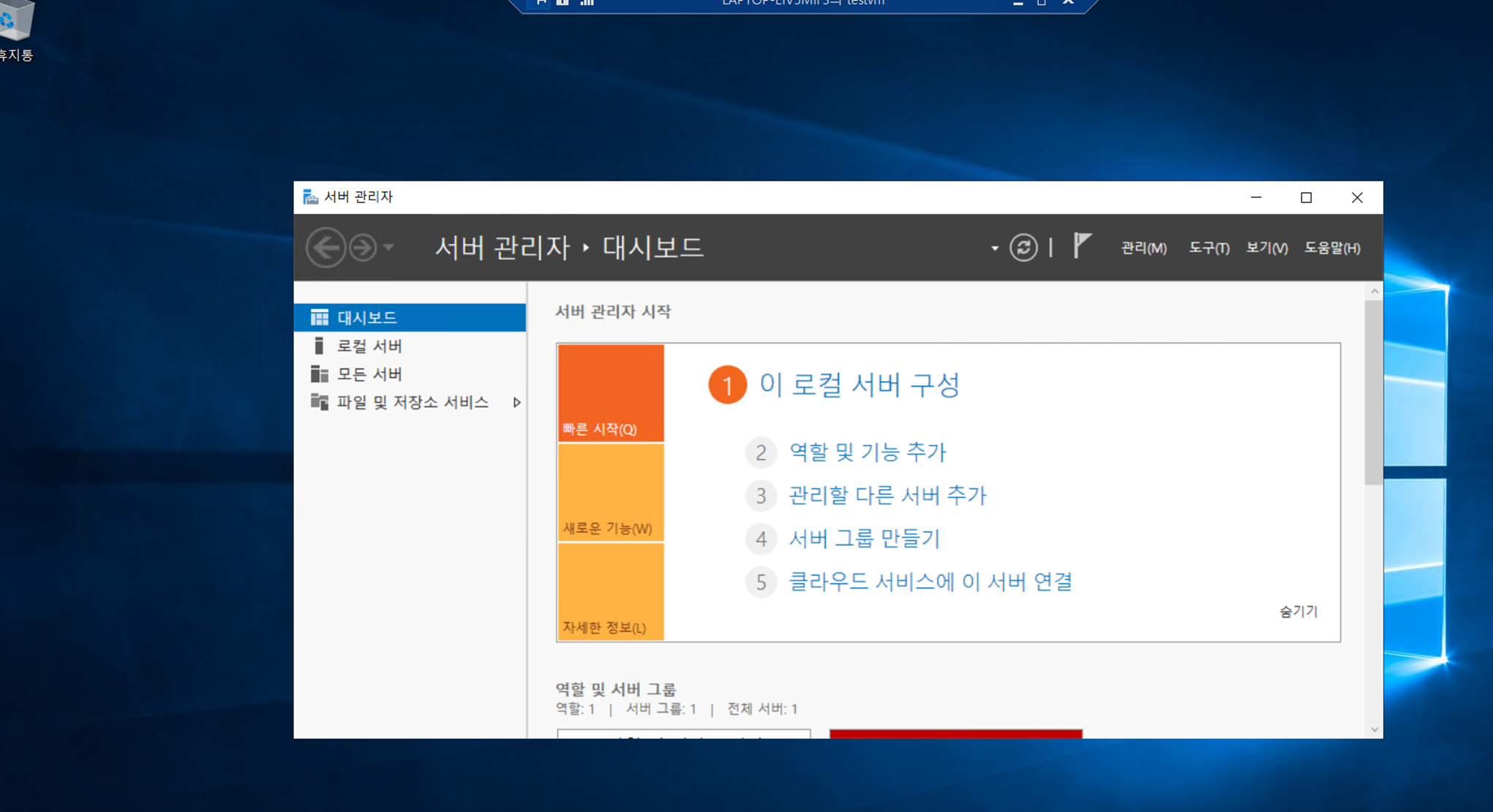 hyper-v에 windows server 설치 완료