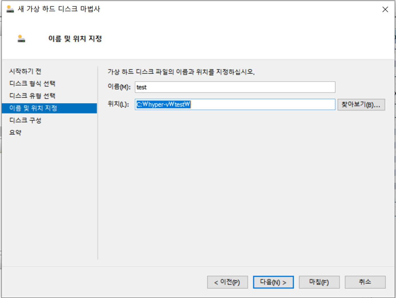 hyper-v를 키고 디스크 생성을 한다.