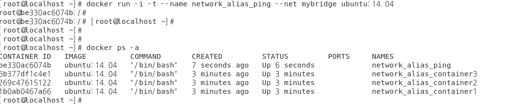 docker run -i -t --name network_alias_ping --net mybridge ubuntu:14.04