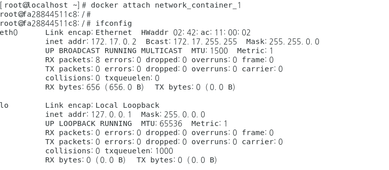 # docker run -i -t -d --name network_container_2 --net container:network_container_1 ubuntu:14.04