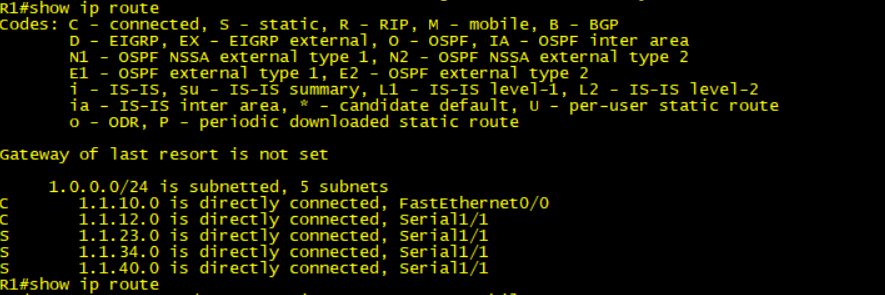 ip route 1.1.40.0 255.255.255.0 s1/1