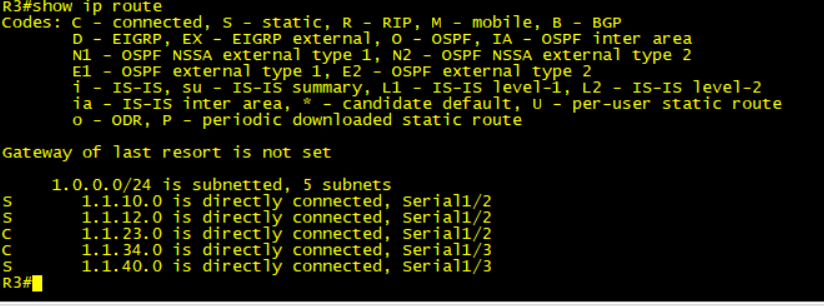 ip route 1.1.40.0 255.255.255.0 s1/3