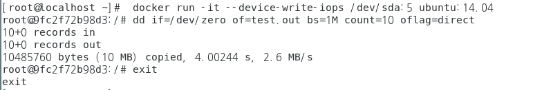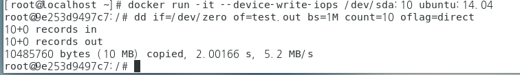# docker run -it --device-write-iops /dev/sda:10 ubuntu:14.04
