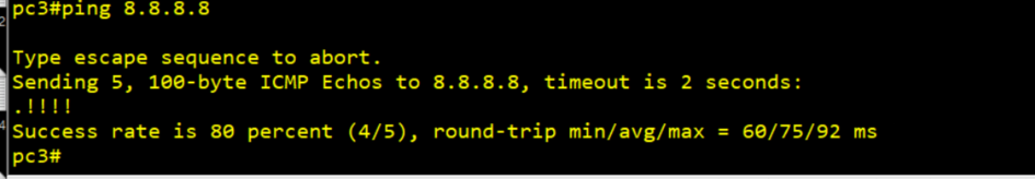 외부로 ICMP 가 가도록 NAT 설정과 전구간 통신하기위한 TRUNK 설정도 했다.