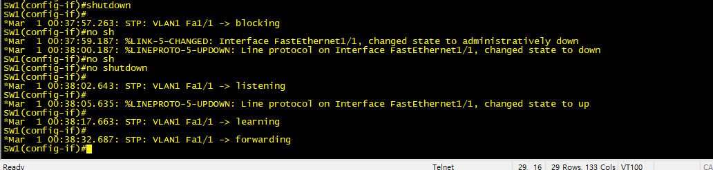 SW3 와 같이 대체 포트를 가지고 있는 스위치의 관점에서 봤을때 접속된 포트가 다운되었을때와 토폴로지가 변경되었을 경우로 구분할 수 있다.