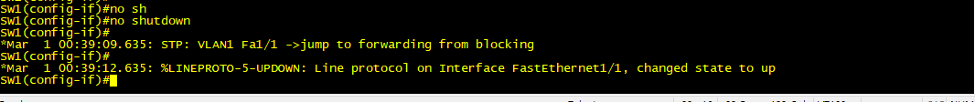 mac주소가 가장 낮은 sw1 이 브리지 id 도 가장낮음으로 루트 스위치가 된다.