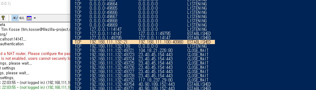 리눅스 클라이언트에서 사설 ip 대역에있는 win_client ftp 접속