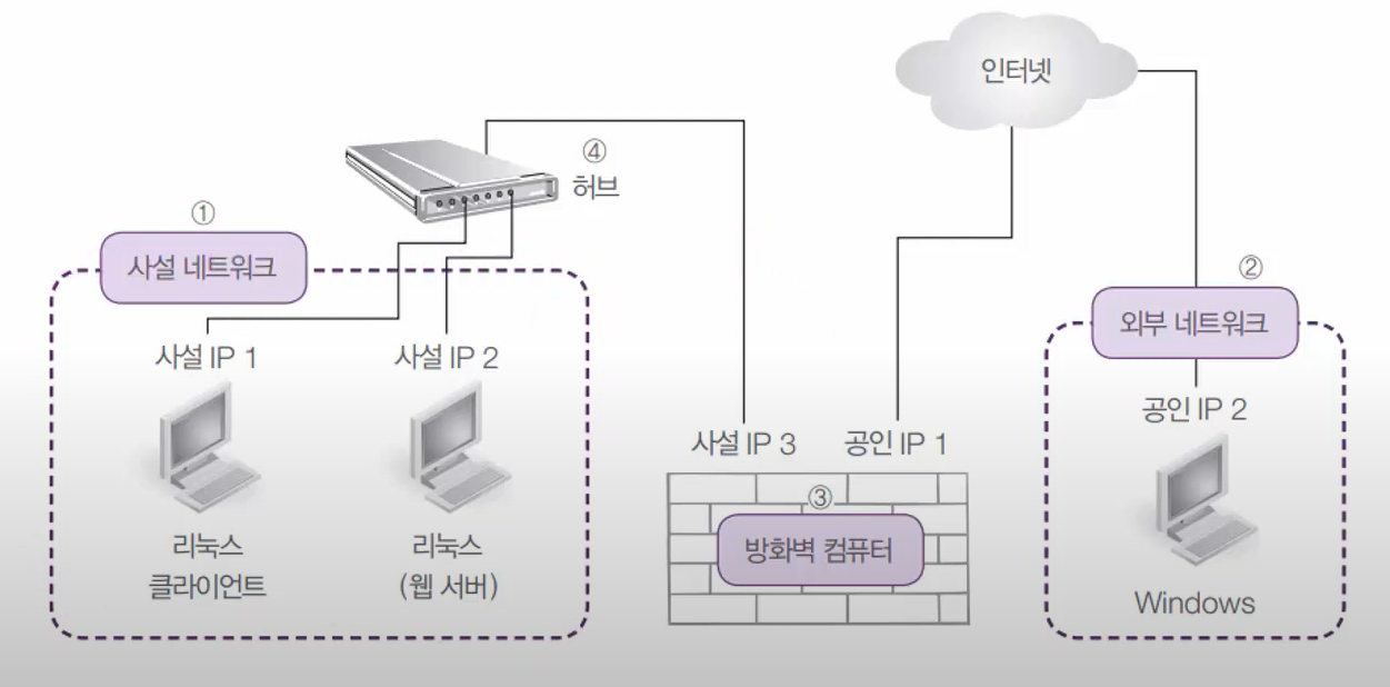 사설 ip 주소의 컴퓨터가 외부의 인터넷으로 접속할 수 있게 하는 방법을 ip 마스커레이팅(masquerading) 이라고한다.