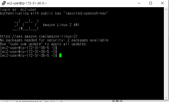 첫 인스턴스 user id 는 ec2-user 이다.