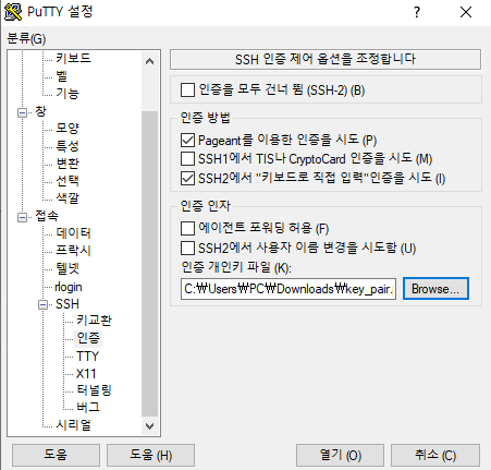 ssh 접속 키페어 생성