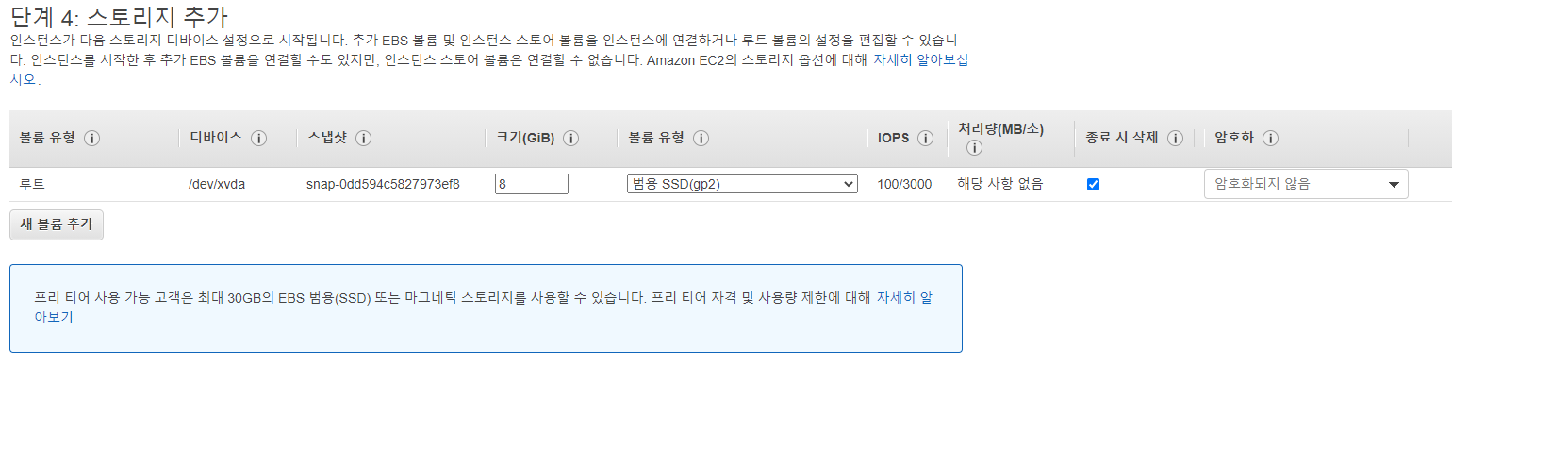 AMI(이미지) 선택이나오는데 반드시 프리티어로 선택해야지만 과금이 안된다.