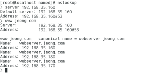 www.jeong.com 주소를 요청하면 192.168.35.160 을알려준다.