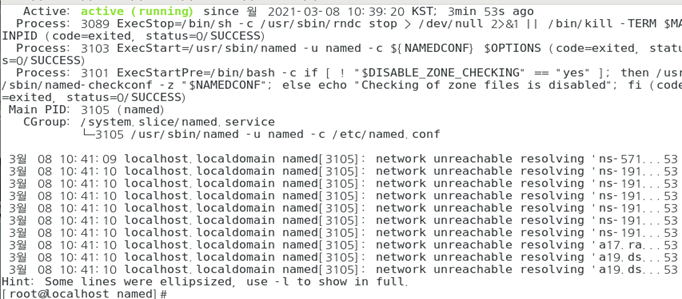 named-checkconf 로 확인한다. 만약 에러가 난다면 /etc/named.conf 에서 문법오류가 발생한 것으로 다시 가서 확인한다.