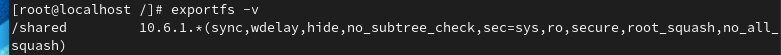 Exportfs –v 하여 공유된 폴더 상태 확인