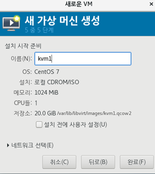 2.Kvm 이름을 지정하고 완료를 누르고