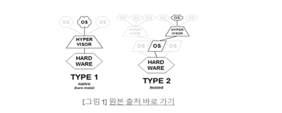 QEMU와 KVM은 수많은 Hypervisor 중 하나입니다. Hypervisor는 서로 다른 복수 개의 OS를 단일 물리 머신 위에서 스케줄링 할 수 있는 소프트웨어이며 이는 [그림]과 같이 두 개의 타입으로 나누어집니다.