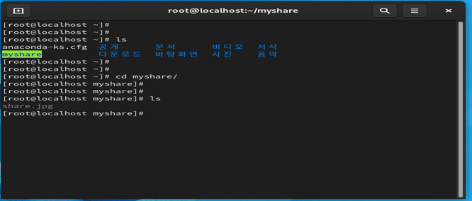 kvm 1~3 에서 myshare 디렉터리로 가면 jpg 파일이 보인다.