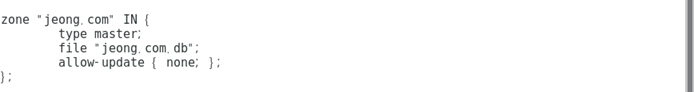 zone "jeong.com" IN { //도메인 이름