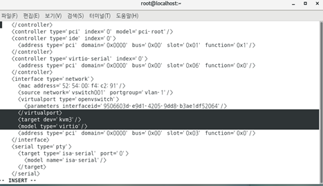 <target dev=‘kvm1~3’/> 을 추가편집 한다.