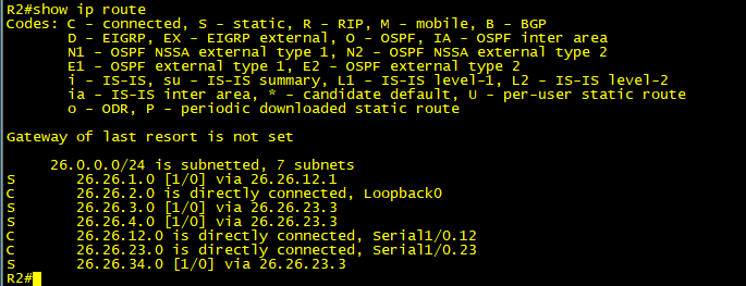 ip route 26.26.23.0 255.255.255.0 26.26.12.2