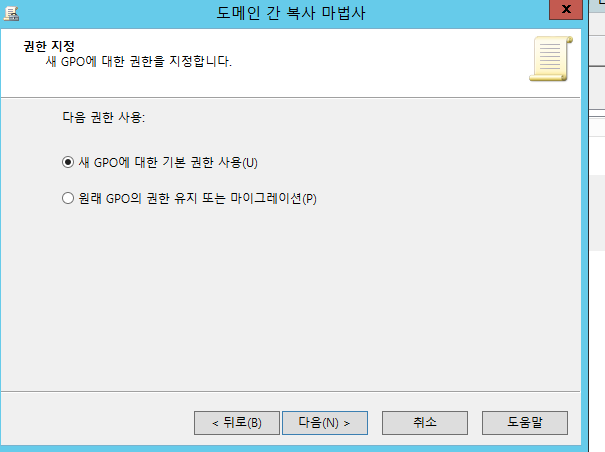 새 gpo 대한 기본 권한 사용 -> 다음