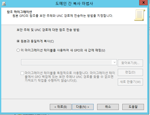 복사해온 그룹 정책을 도메인 단위 또는 OU 단위에 필요할 경우 적용해서 사용하면 된다.