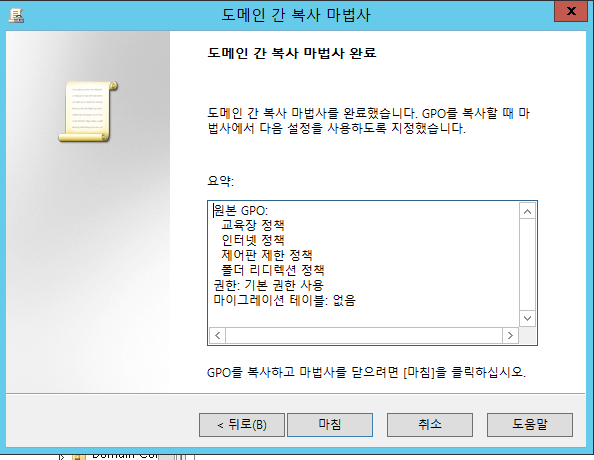 간단한 목록이 나오고 마침을 누르면 정책 마이그레이션이 끝난다.