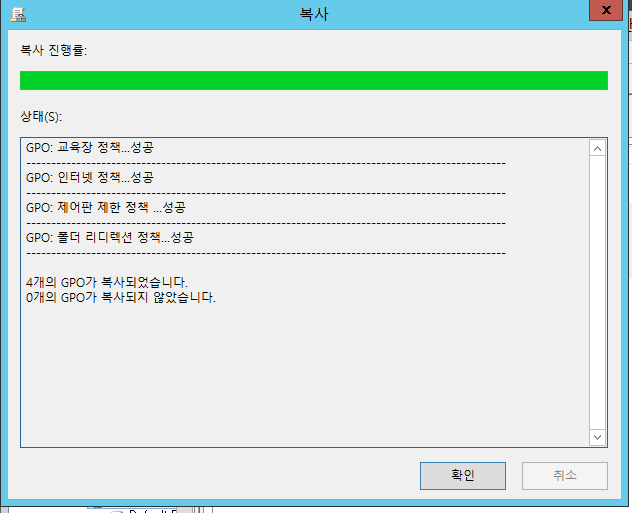 그룹정책에 문제가 발생되면 백업한 그룹정책을 다시복원 시키면 된다.