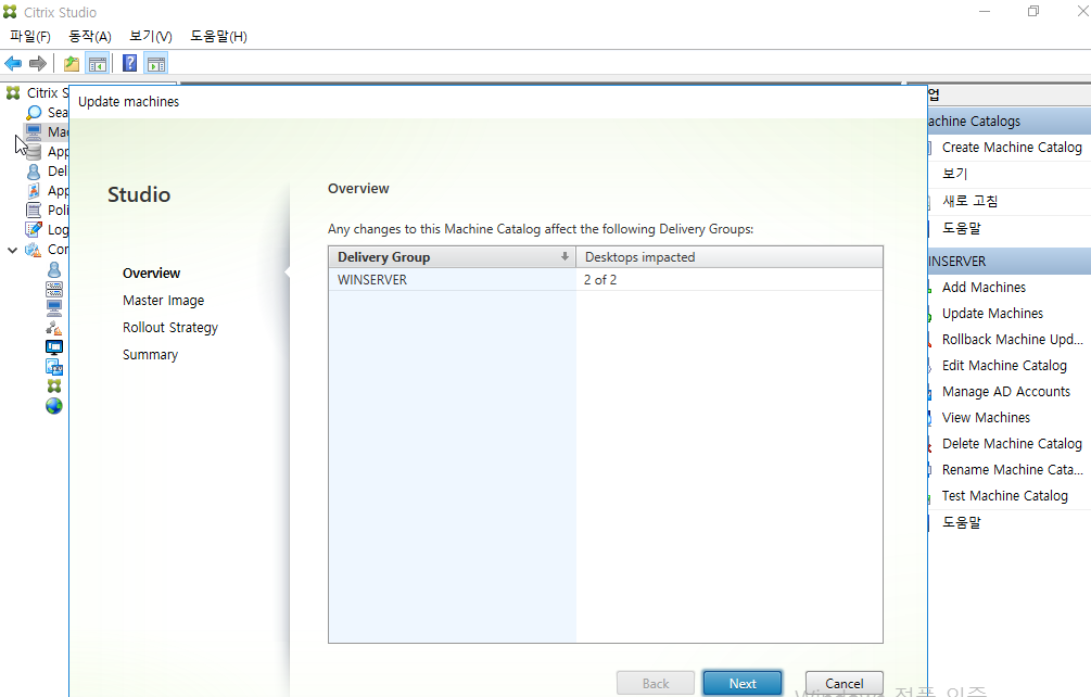 마스터 이미지(MCS) 업데이트