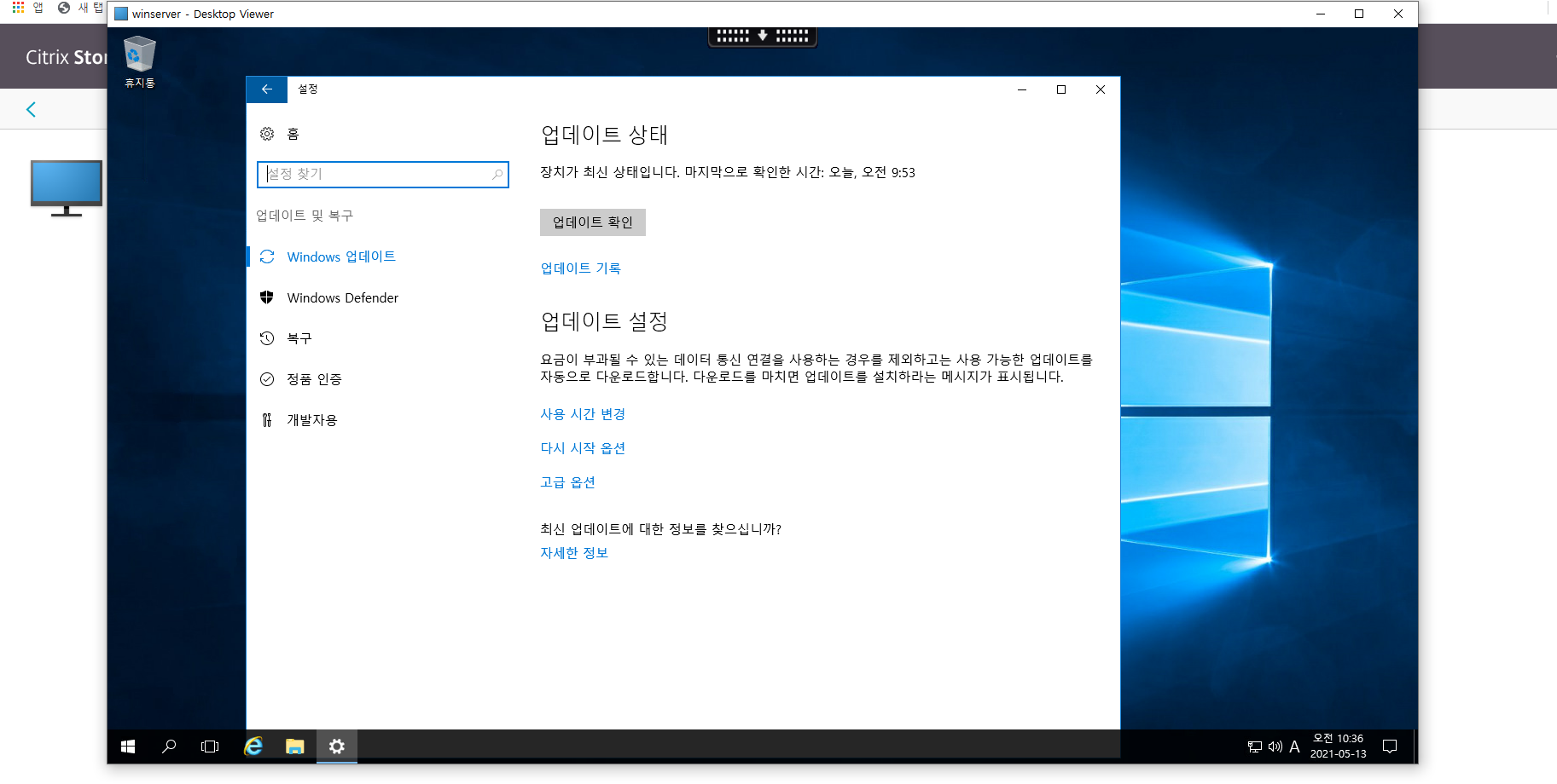 가상 데스크톱 업데이트 전