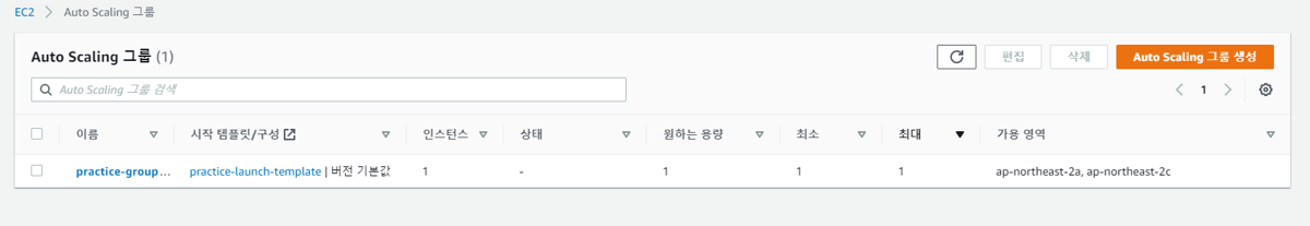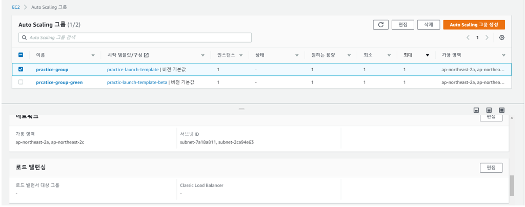 Auto scaling 그룹 -> 편집 -> practice-target-group 대상 그룹에 등록한 뒤 저장