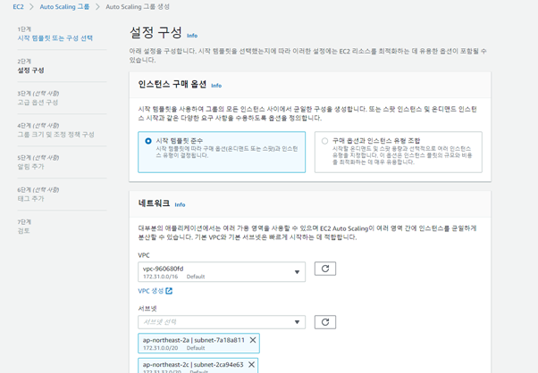 Auto scaling 그룹 생성