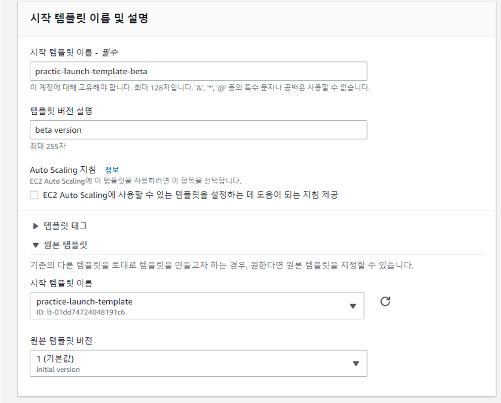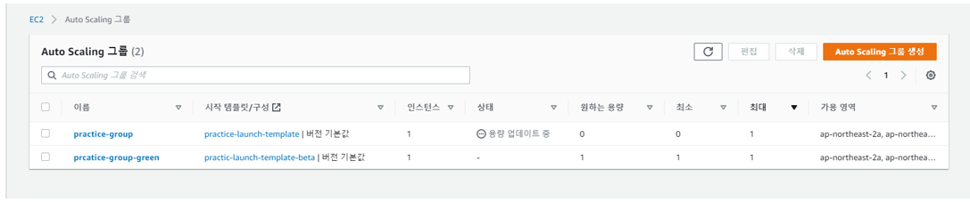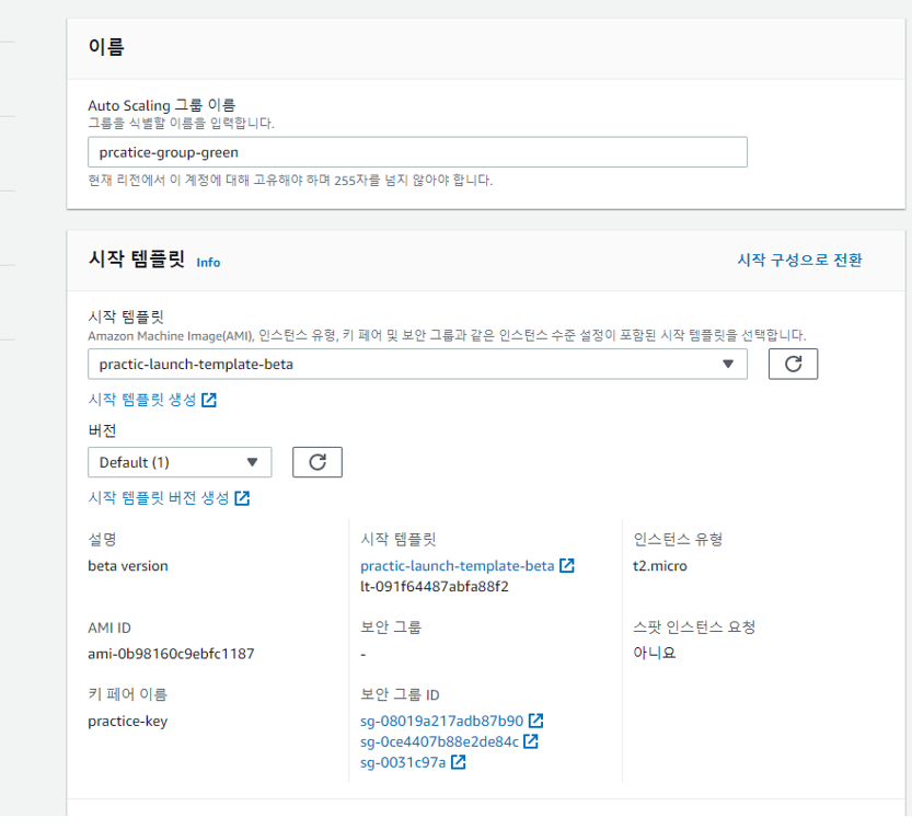 2.AMI를 시작템플릿 생성 -> 그린 그룹에 인스턴스 수를 기존 그룹과 똑 같은 수로 추가