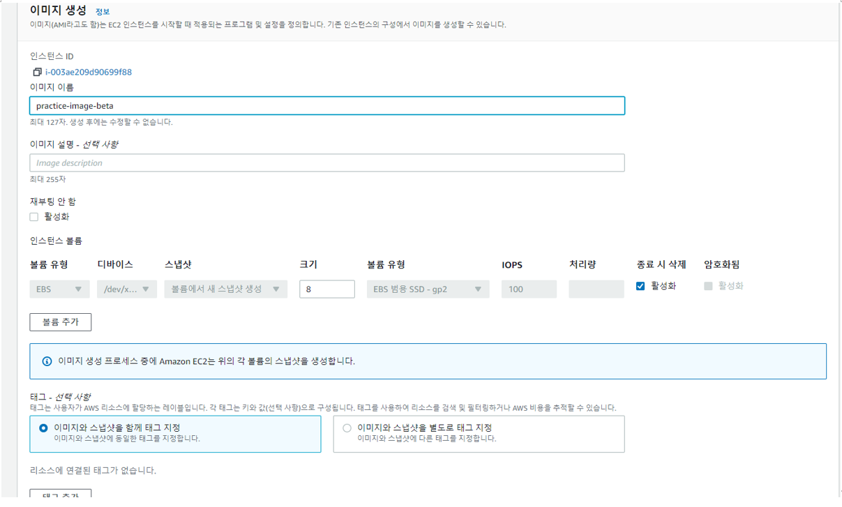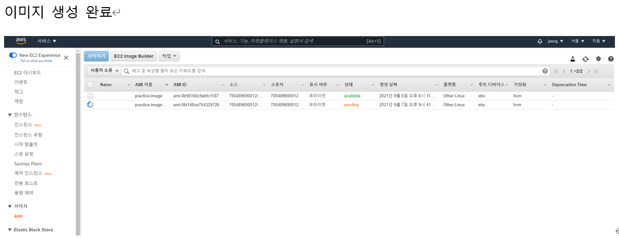 인스턴스를 중지 시키고 중지된 인스턴스를 이미지로 만든다.