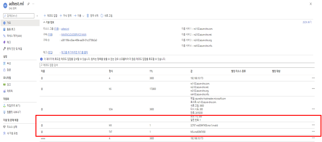Azure에는 분명 dns 를 추가해줬는데 온프레미스에는 안뜨지? (시간지나면 뜸..)