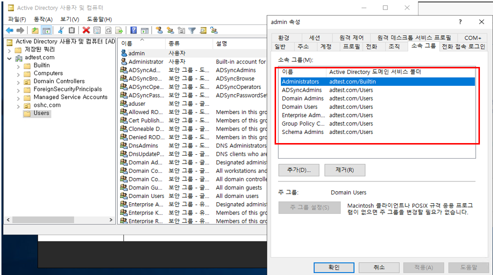 ADDC에 연결할 admin 관리자 생성 -> 진짜 당연하겠지만 admin 권한도 같이 해줘야함;