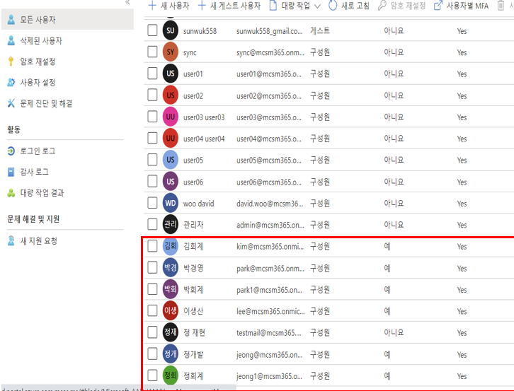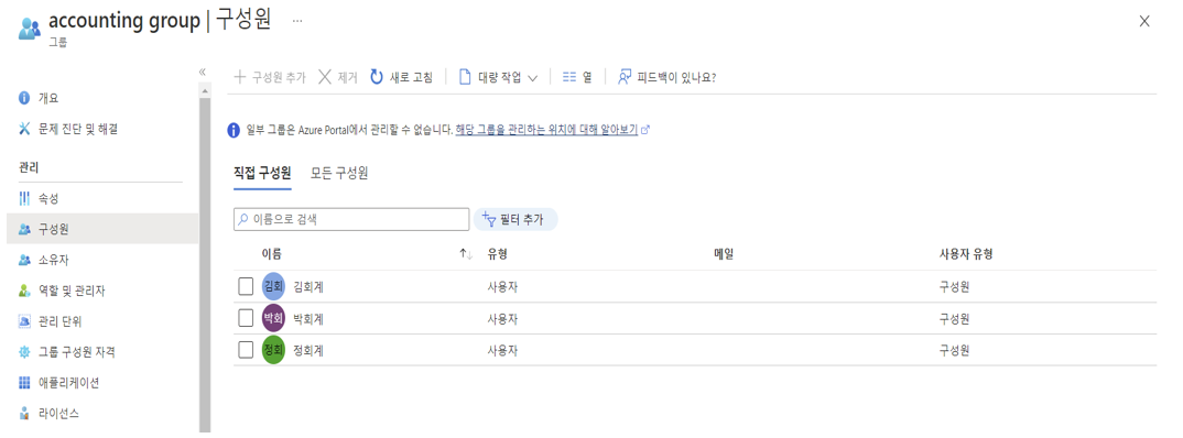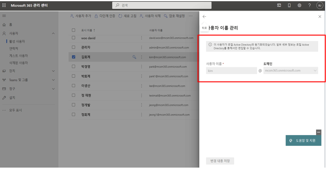 단... 온프레미스에서 올라온 계정은 로컬 AD에서만 수정가능함..