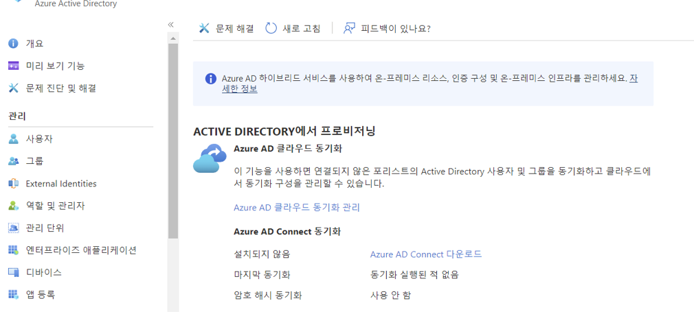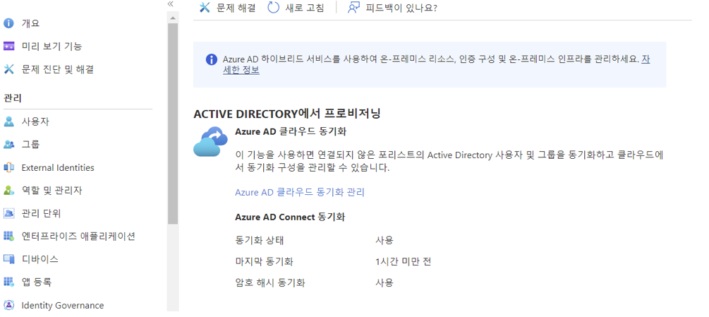 쓰는이유? 온프레미스 AD 서버의 정보를 클라우드에 동기화 시키고, 클라우드 앱 리소스에 접근하기 위함